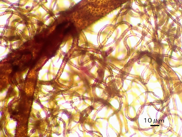 上は仮根で、太い仮根から枝分かれして次第に細い仮根になっていきます。 仮根の表面にはたくさんのパピラがあります。