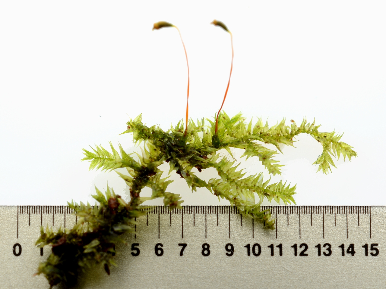 葉は長さ1mm前後、披針形で、漸尖して細く鋭頭、葉先近くにかすかな目立たない歯があります。 中肋はあるような無いような・・・
