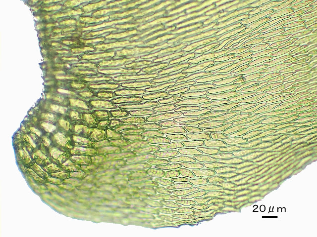 とても小さなコケで、葉を含めた茎の幅は 0.4~0.5μmです(上の写真)。